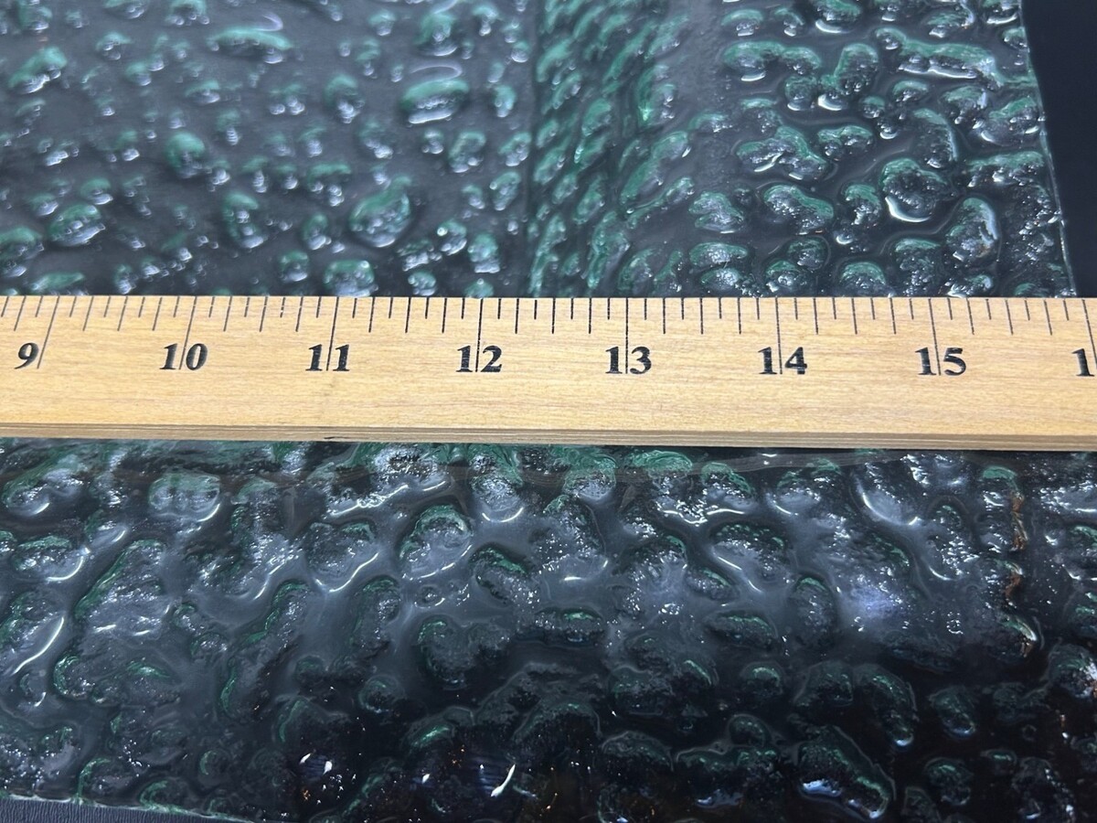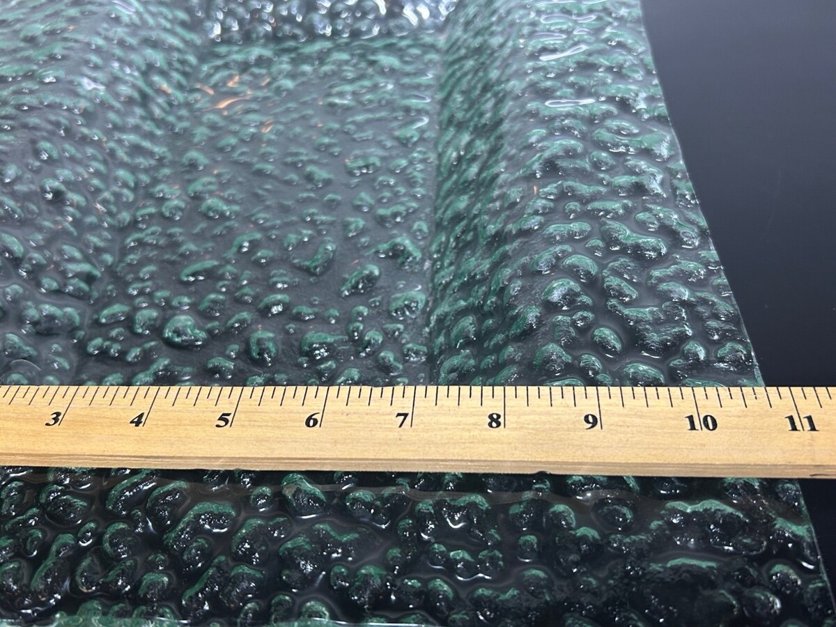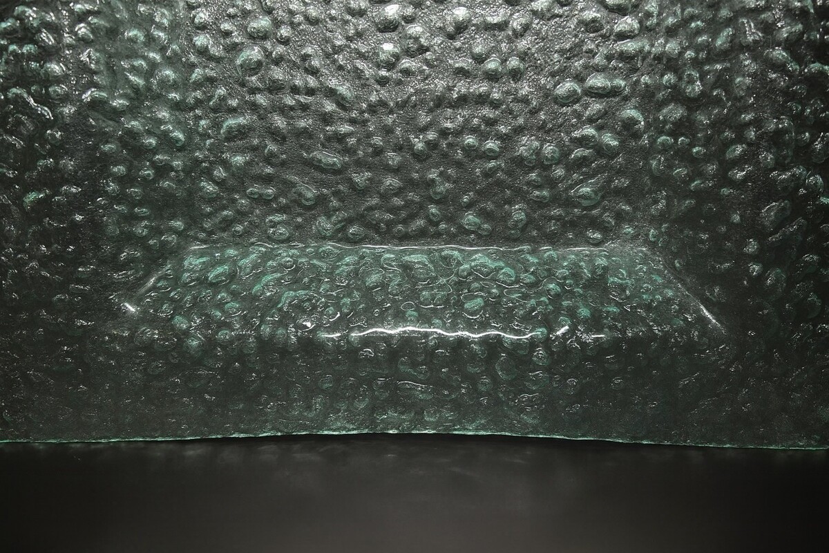 This gorgeous rectangular sea foam green tray is a testament to sustainable art. It was crafted from recycled glass with a distinct bubble texture. Its light green hue adds an ethereal charm, making it a functional and aesthetic centerpiece. Designed with meticulous attention to detail, it highlights the interplay of light and texture, elevating any decor.