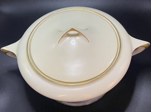 This beautiful antique covered bowl from Bavaria's JHR Hutschenreuther displays gorgeous hand-painted artistry. The pastoral river scene is adorned with gold accents, making it a truly exquisite piece for any collector. The bowl is perfect for decorative use or for serving food at special occasions. The brand is known for its quality and craftsmanship, with Hutschenreuther one of Germany's premiere pottery groups during times of its life being known for gorgeous pieces...and this bowl is no exception. The maker's mark on this piece dates it to 1857-1920. The lovely hand-painted details make it a unique addition to any collection. The bowl and lid are both in great condition and would make a wonderful gift for anyone who appreciates fine artistry.