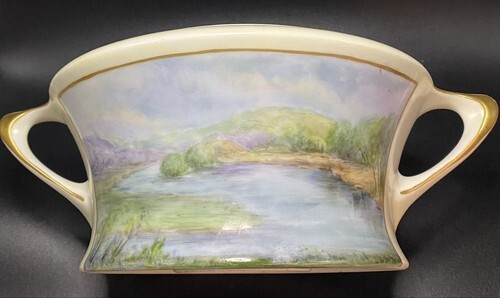 Hutschenreuther Bavaria JHR Antique Covered Bowl Hand Painted Pastoral River