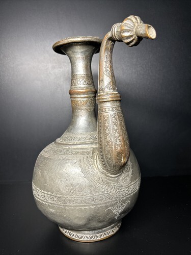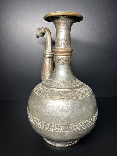 This antique water pitcher jug is a stunning piece of history. Crafted in the Ottoman Empire in the 19th century, it features intricate hand engraving and is made of high-quality copper. Its unique design and historical significance make it a must-have for any collector of metalware or copper items. Whether you display it in your home or add it to your collection, this water pitcher jug will surely impress.