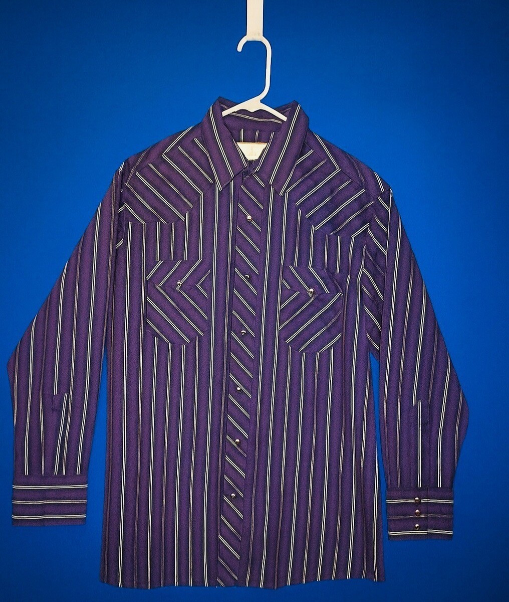 Wrangler Mens Western Pearl Snap Purple Black Silver Striped Long Sleeve Shirt L