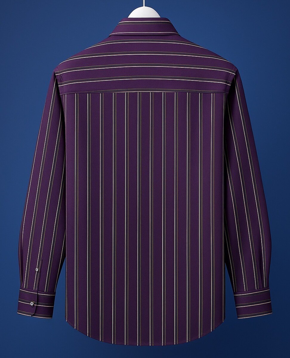 Embrace a classic Western look with this Wrangler shirt, featuring striking purple and black stripes with silver pin stripes, and purple pearl snaps.