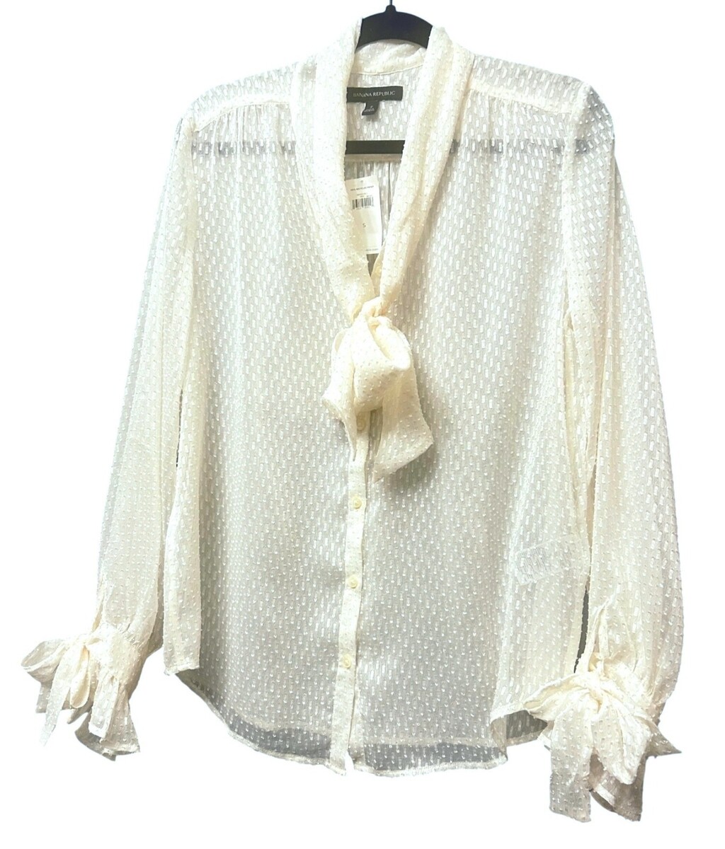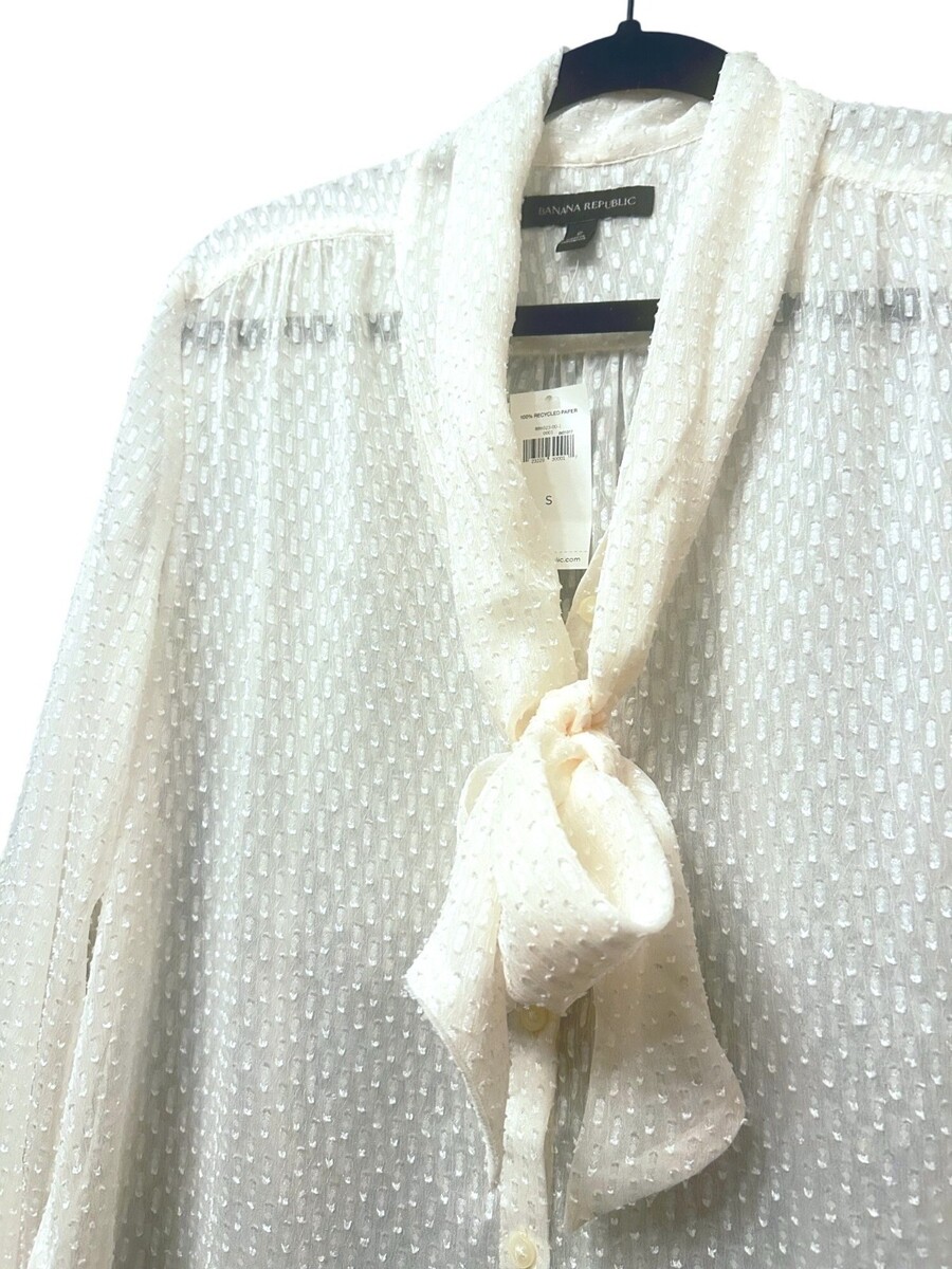 Banana Republic Sheer Ivory Polka Dot Textured Bow Tie Blouse Size Small NEW NWT