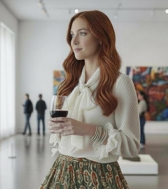In a sunlit gallery with art adorning the walls, this blouse becomes an elegant companion. Its delicate texture whispers sophistication, while bow details at the neck and cuffs tell a story of refined grace. A piece that blends timeless charm with modern poise.