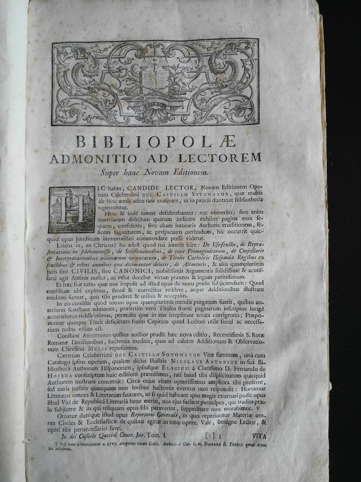 Castillo Opera Omnia Juridica 1 And 2 de Usufructu Latin año 1753 Mdccliii Unico