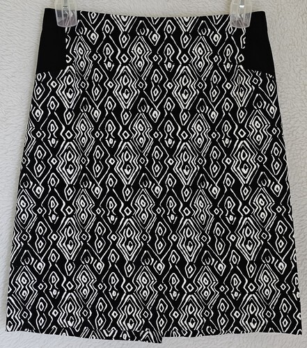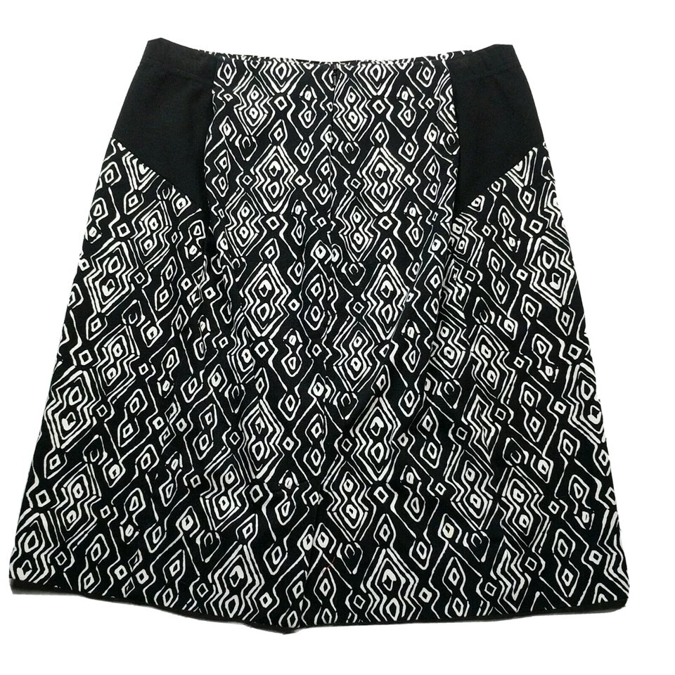 Chicos Womens A Line Skirt Size 0.5 Small Black White Geometric Back Zip