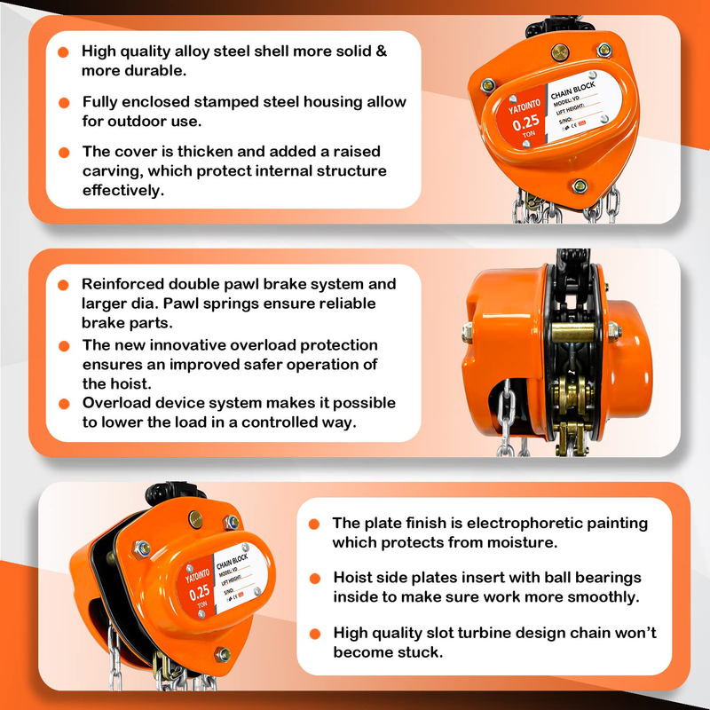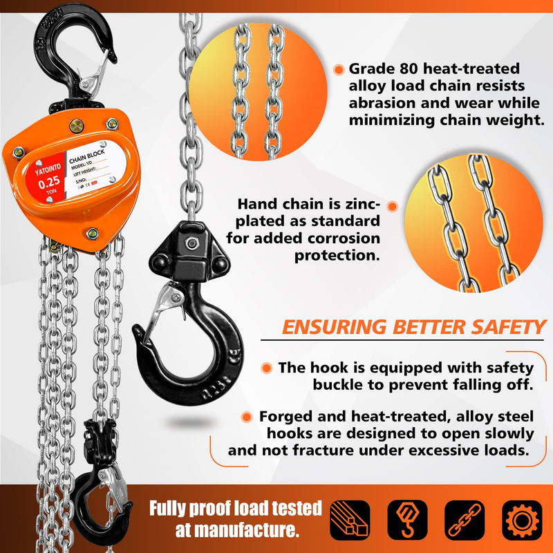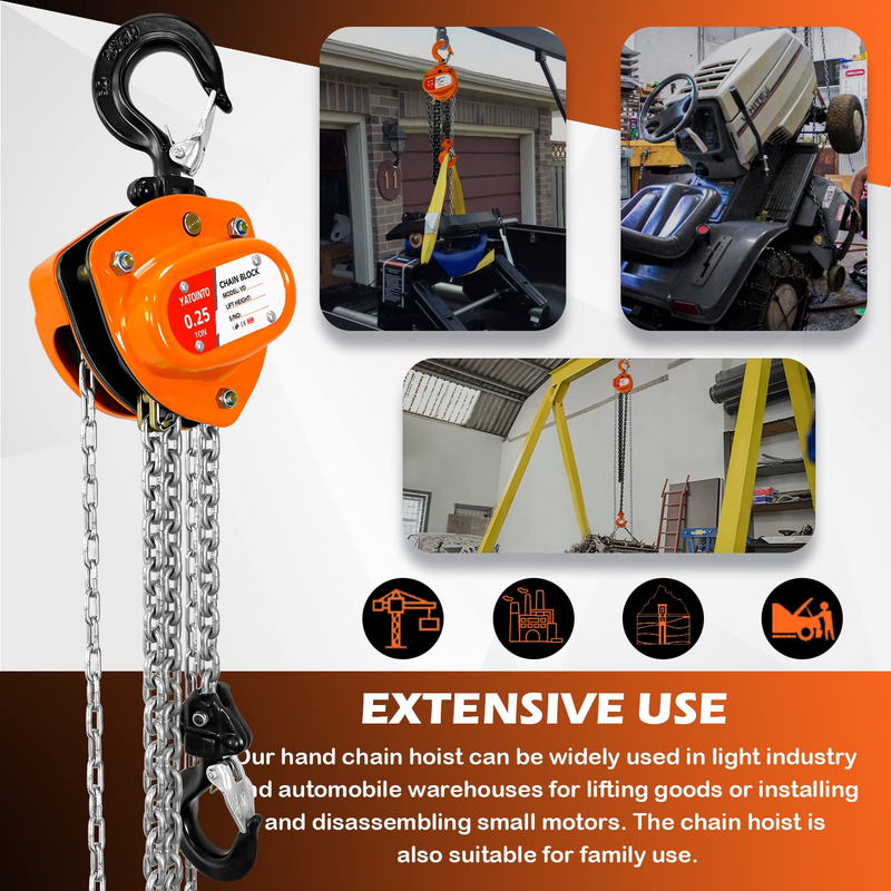 YATOINTO Hand Chain Hoists give you a practical alternative based on an economical design using fewer parts for trouble-free service.