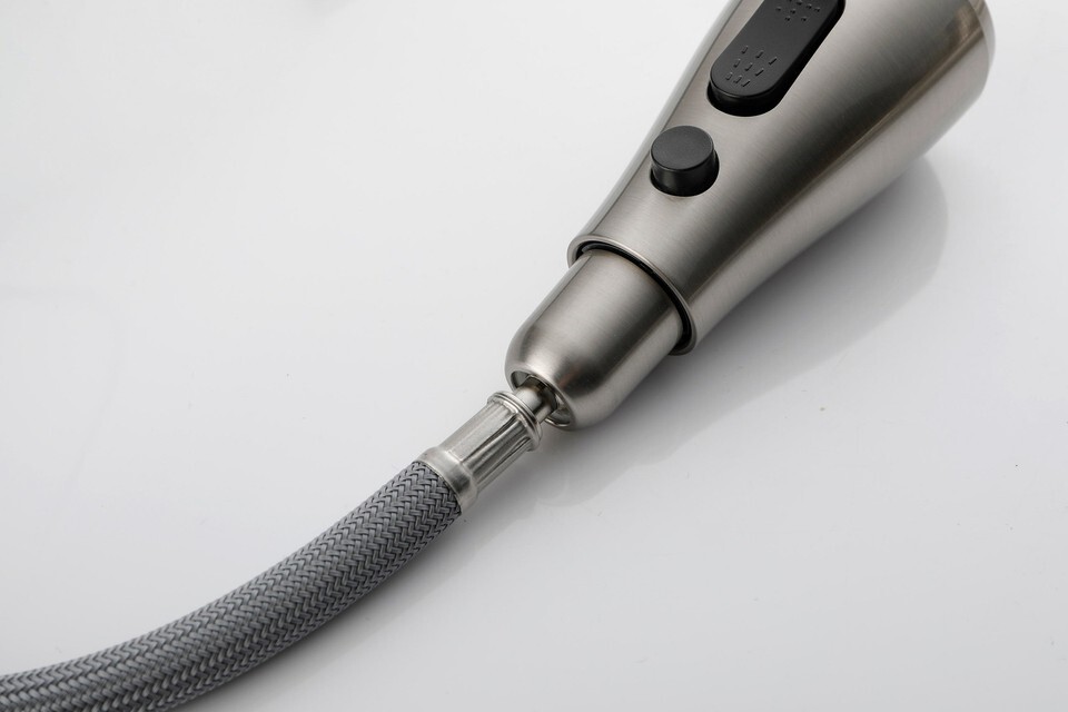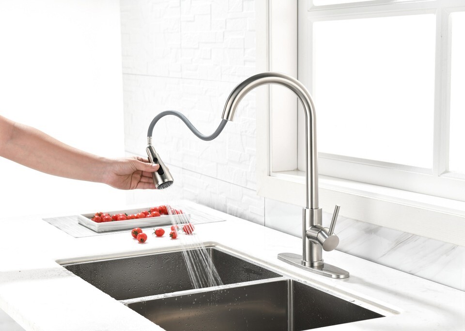The pull-out spray head is designed to fit in a variety of sinks, and the high-arc nozzle rotates 360 to make your water use easier and more convenient.