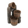 Introduce a soothing ambiance and profound rustic style to your space with this decorative water fountain. The richly detailed three-tiered bucket design pairs with a warm,earthy brown colorway to create an alluring centerpiece that will elevate your garden,patio,or porch decor. Completing the versatile beauty,this fountain also features LED lights that ensure it will catch the eye even at night.
