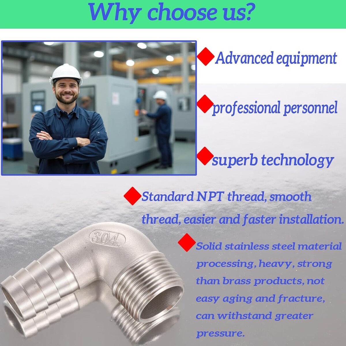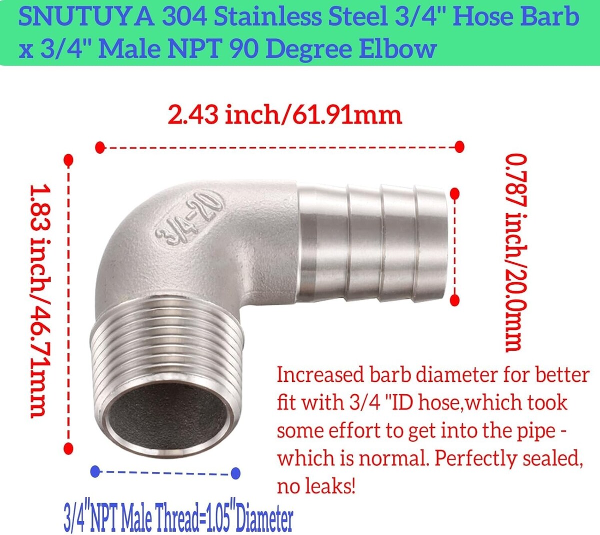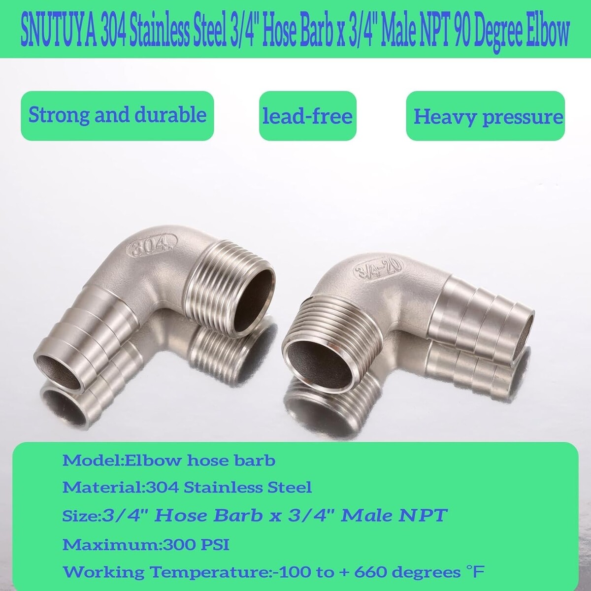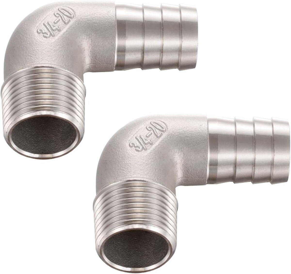 2pcs 3/4" Hose Barb x 3/4" Male NPT 304 Stainless 90 Elbow