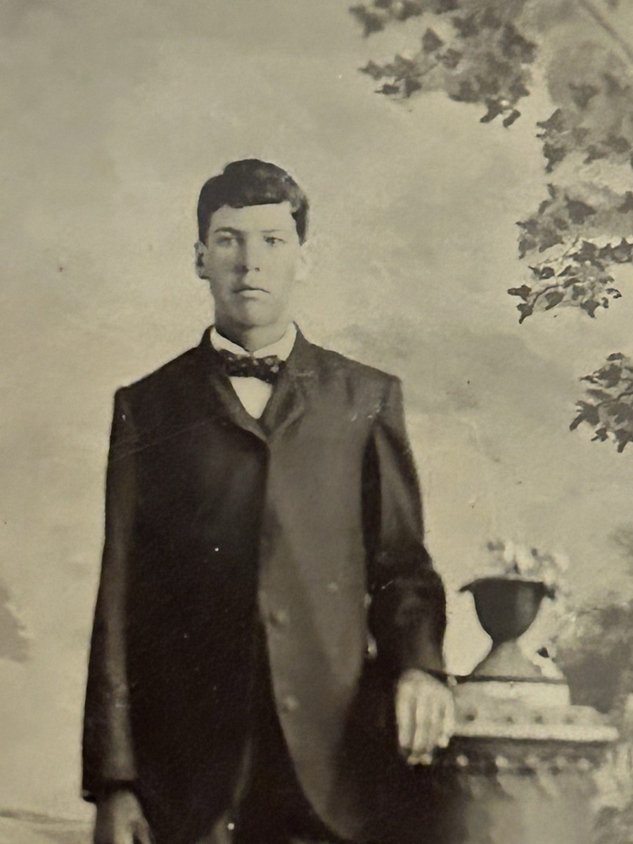The product is an antique tintype photo dating back to the 1800s, featuring a young tall man dressed in a suit. This vintage photograph was produced using the tintype technique, adding to its historical and collectible value. The image captures the essence of a man's fashion and style from that era, making it a unique and valuable piece for collectors of photographic images.