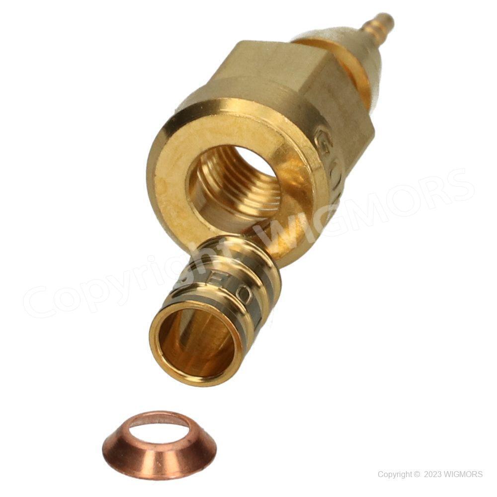 On this listing we offer Brand New: 1/4male flare conncector Quadra XBB02C FI 2 - straight 1/4" as hoft but with Schraeder pin.