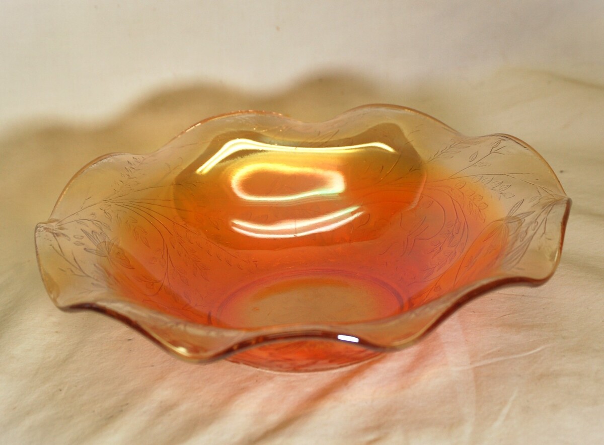Carnival Glass Wavy Bowl Iridescent Marigold Color