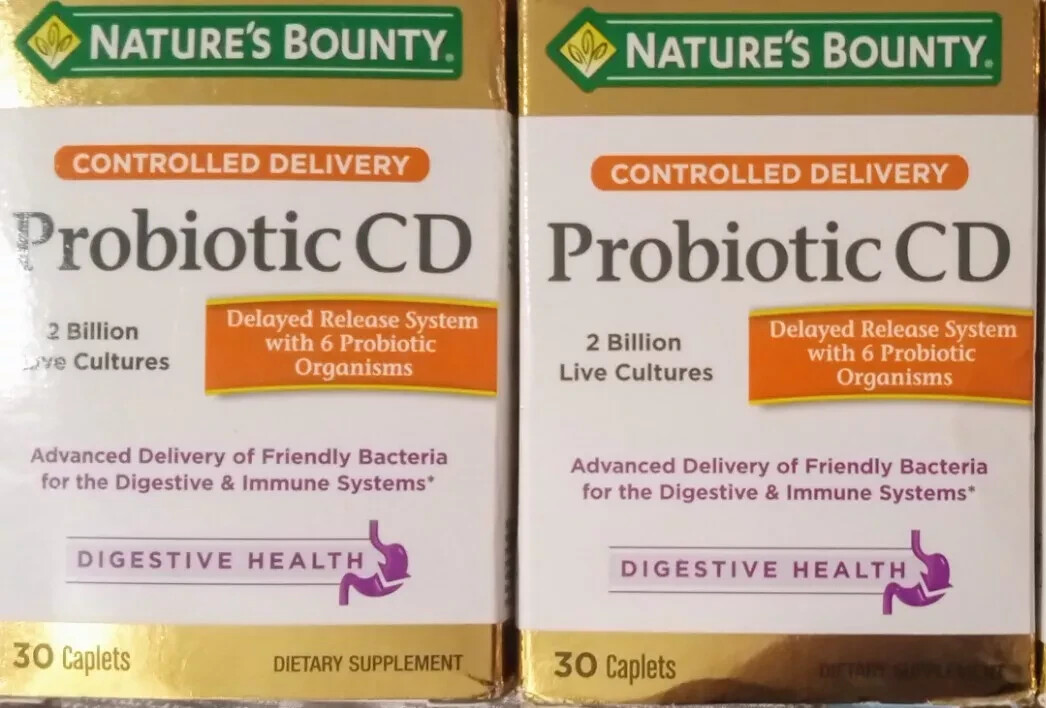 LOT (2) NATURE'S BOUNTY PROBIOTIC CD CONTROLLED DELIVERY 30 CAPLETS Exp 05/26