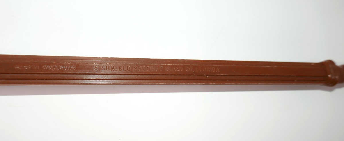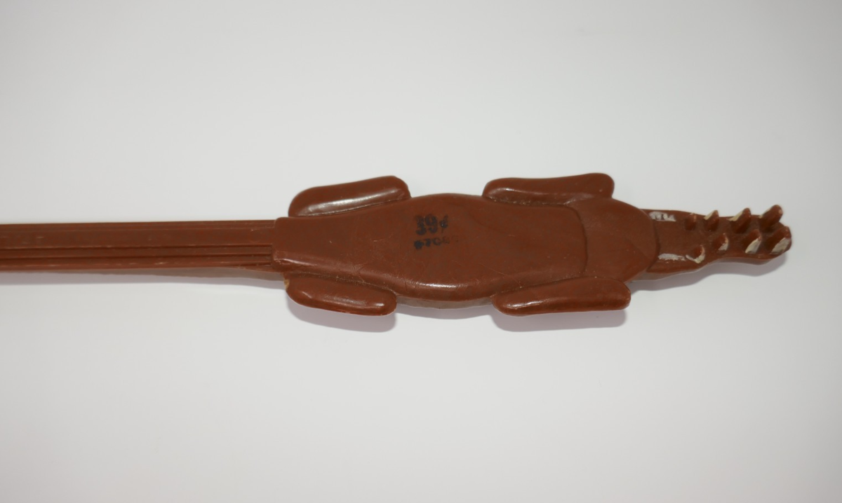 The Sun Glo Back Scratcher is a unique collectible item originating from Hong Kong. This souvenir measures approx. 16" long and features a design of alligators or crocodiles, representing Florida's iconic wildlife. The back scratcher is a fun and practical addition to any souvenir collection, perfect for those who appreciate Florida's exotic wildlife and history. Made of durable plastic, this vintage piece is sure to stand the test of time and serve as a reminder of a memorable trip to the Sunshine State.