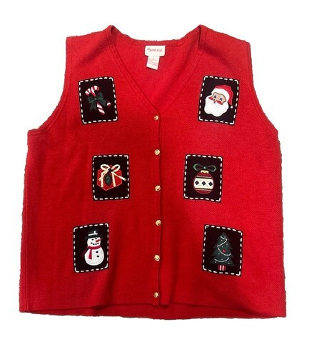 Women's Holiday Time Ugly Christmas Sweater Vest Santa Reindeer XL