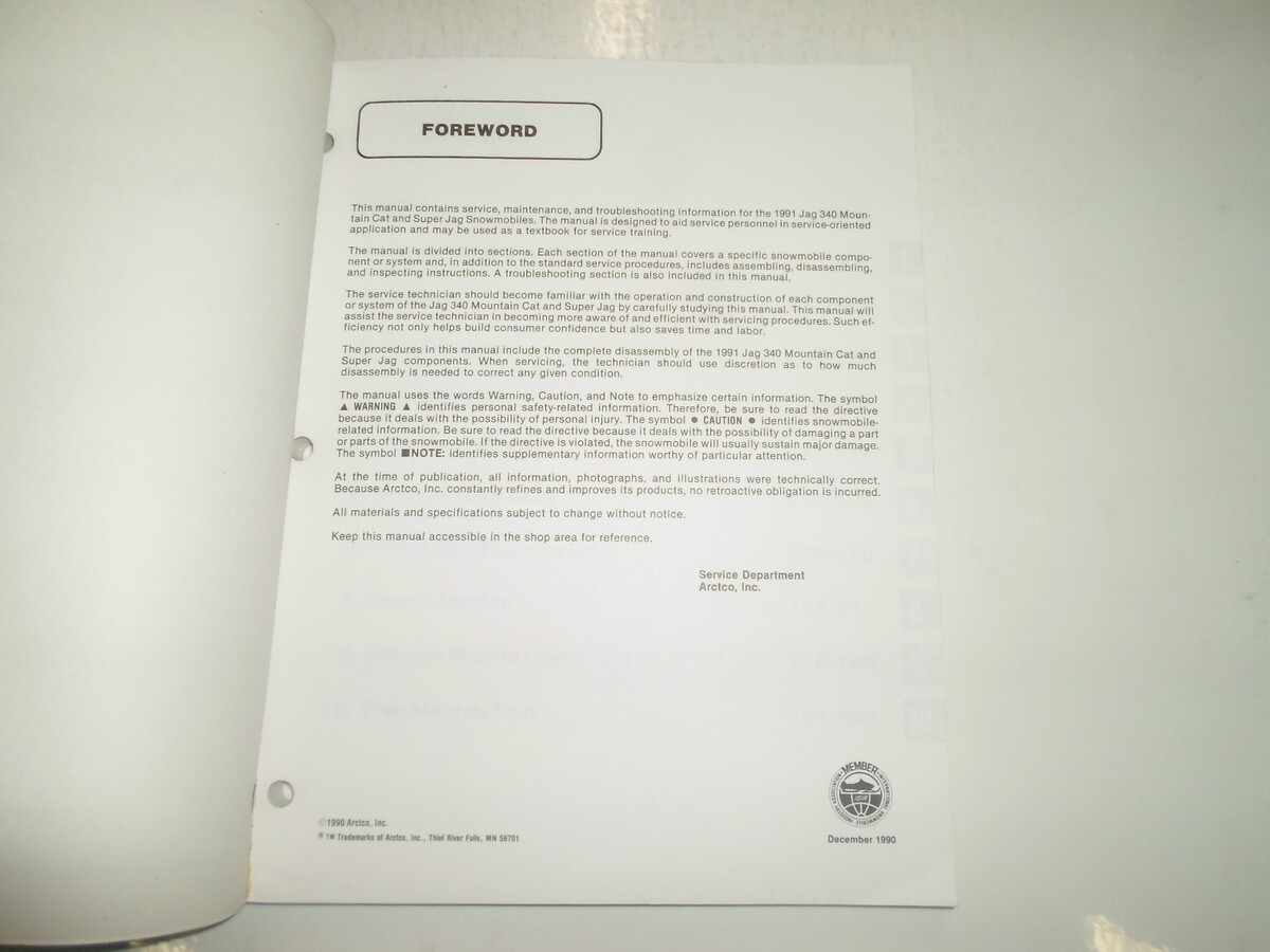 Loads of information and illustrations, covers a lot, no missing pages, step by step Instructions, exploded illustrations and/or diagrams, great manual to have when you own a ARCTIC CAT Jag 340 Mountain Cat or Super Jag. This manual will save you money in Repairs/Service.