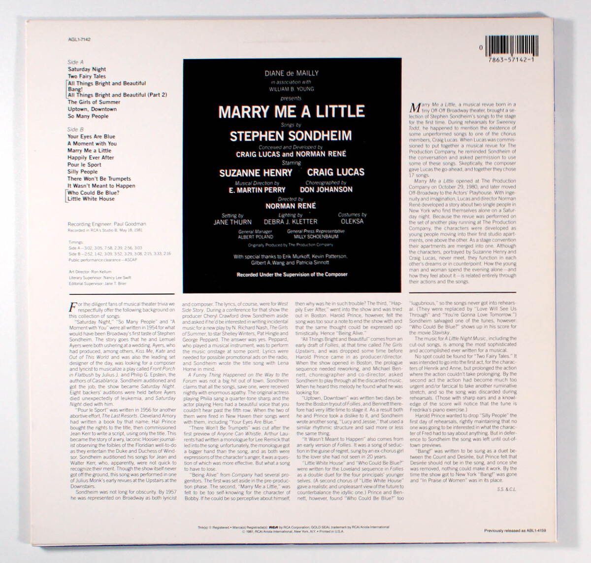 Stephen Sondheim - Marry Me A Little (1986) Vinyl LP • Off-Broadway Soundtrack