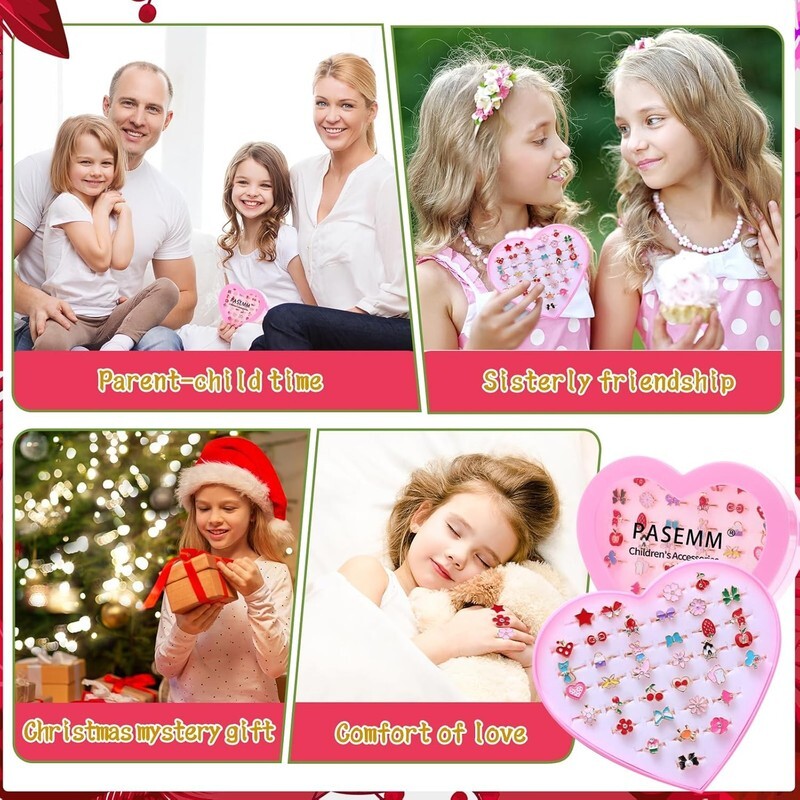 ?Perfect Gifts for Little Girls?These little girl rings are packed in heart shaped pink box. It is the best Christmas birthday gifts for 4 5 6 7 8 9 10 11 12 year old girls.Lovely giftable package can be applied for birthday parties, goodie bag stuffers, gift bag fillers, party favors and seasonal events like Halloween, Valentine's Day, party decorations, girls party supplies. This little girl jewel rings set makes the perfect and adorable Christmas, birthday gifts for girls age 4-12.