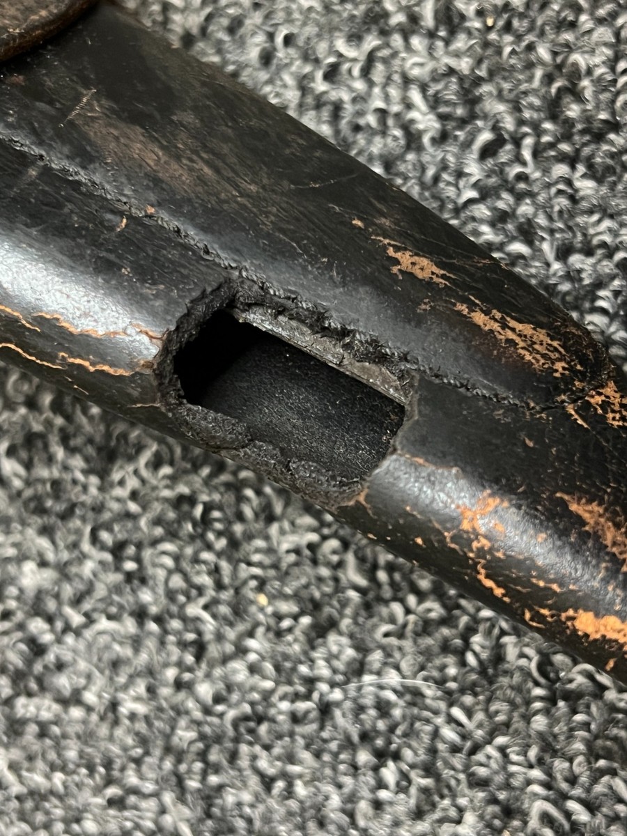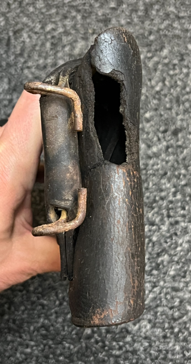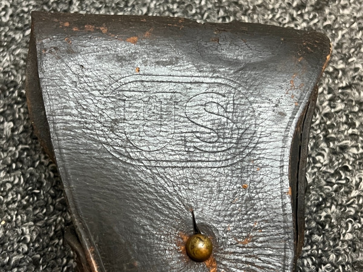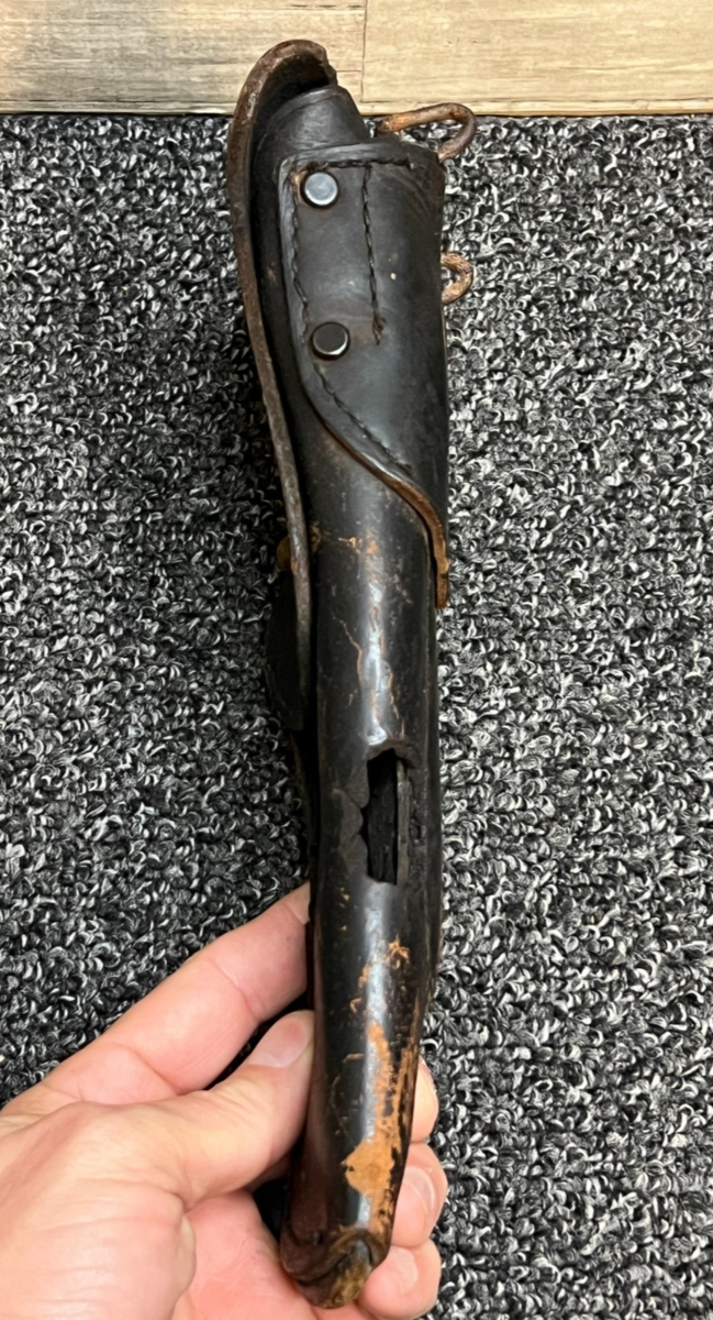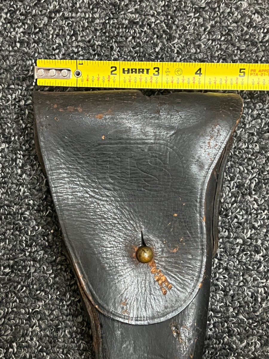 The item for sale is an Original US Army WWII M1916 Pistol Holster .45 1911 WW2. In heavily worn condition with age-related wear. I can't quite make out the manufacturer stamp on the rear, but can tell it's an oval shaped marking.