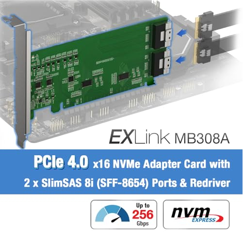 EXLINK MB308A PCIE 4.0 X16 NVME ADAPTER CARD WITH 2 X SLIMSAS 8I (S