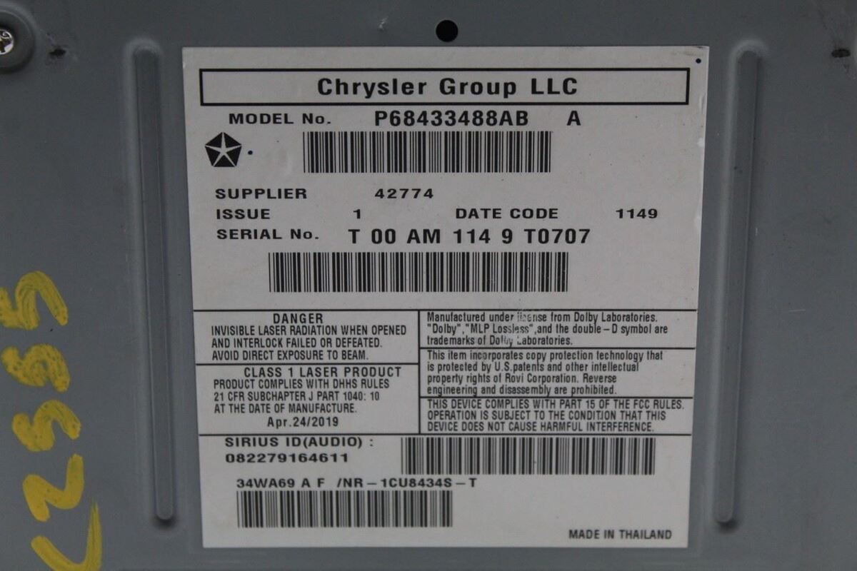 TOWN COUNTRY 13-15 receiver, w/navigation, face plate ID RHB, w/satellite radio