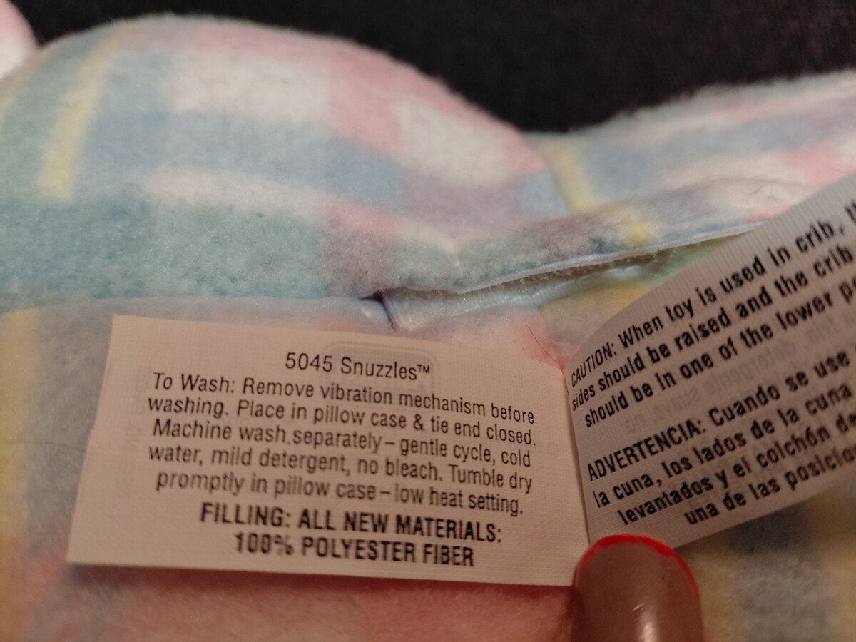 The Vintage 1996 Playskool 12" Snuzzles Vibrating Plaid Pastel Satin Bear is a plush bear toy from the Playskool brand.