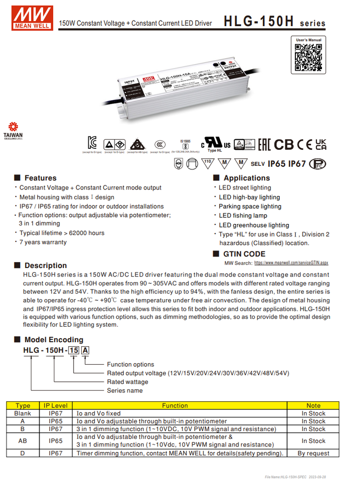 HLG-150H-36B, HLG-150H 36B, HLG 150H 36B, HLG 150H 36 |