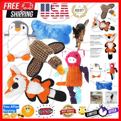 Enjoy a fun game of catch with your dog by using this fun animal squeaky dog toy.