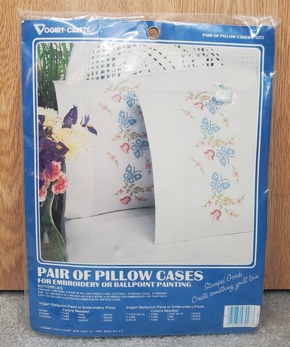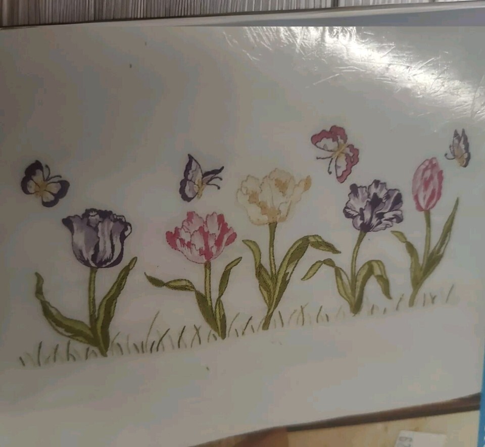 JANLYNN Stamped Embroidery Pillow Case Pair Tulip Garden Butterflies NEW Sealed