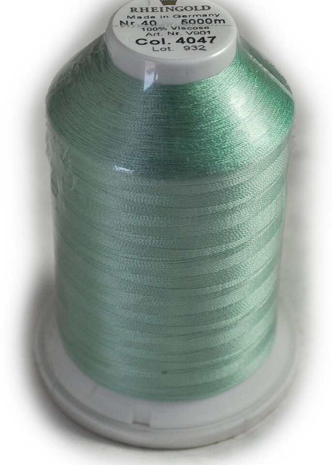 Rheingold Rayon No. 40 Sea Foam Green, Commercial Rayon Cone, 5500yd/5000 m Rheingold is a brilliant all-purpose machine embroidery Rayon thread made from the highest-quality viscose filament.
