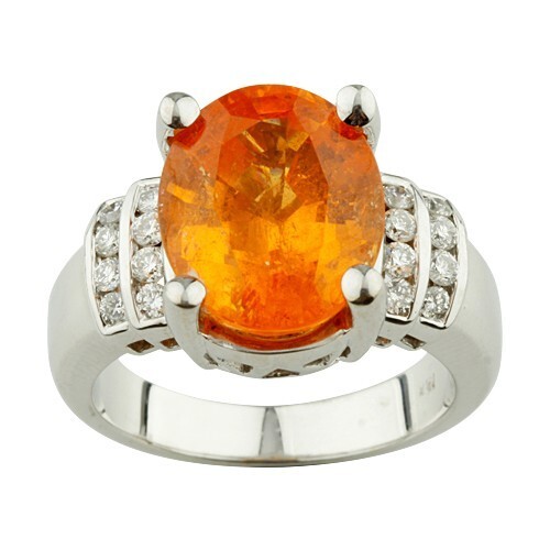 Amazing 18K White Gold Spessartite Garnet Diamond Ring