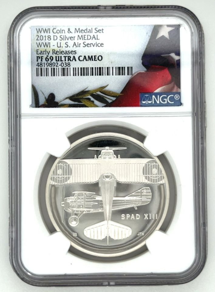 2018 D Silver Medal WW1 - U.S. Air Service Early Releases PF 69 Ultra Cameo