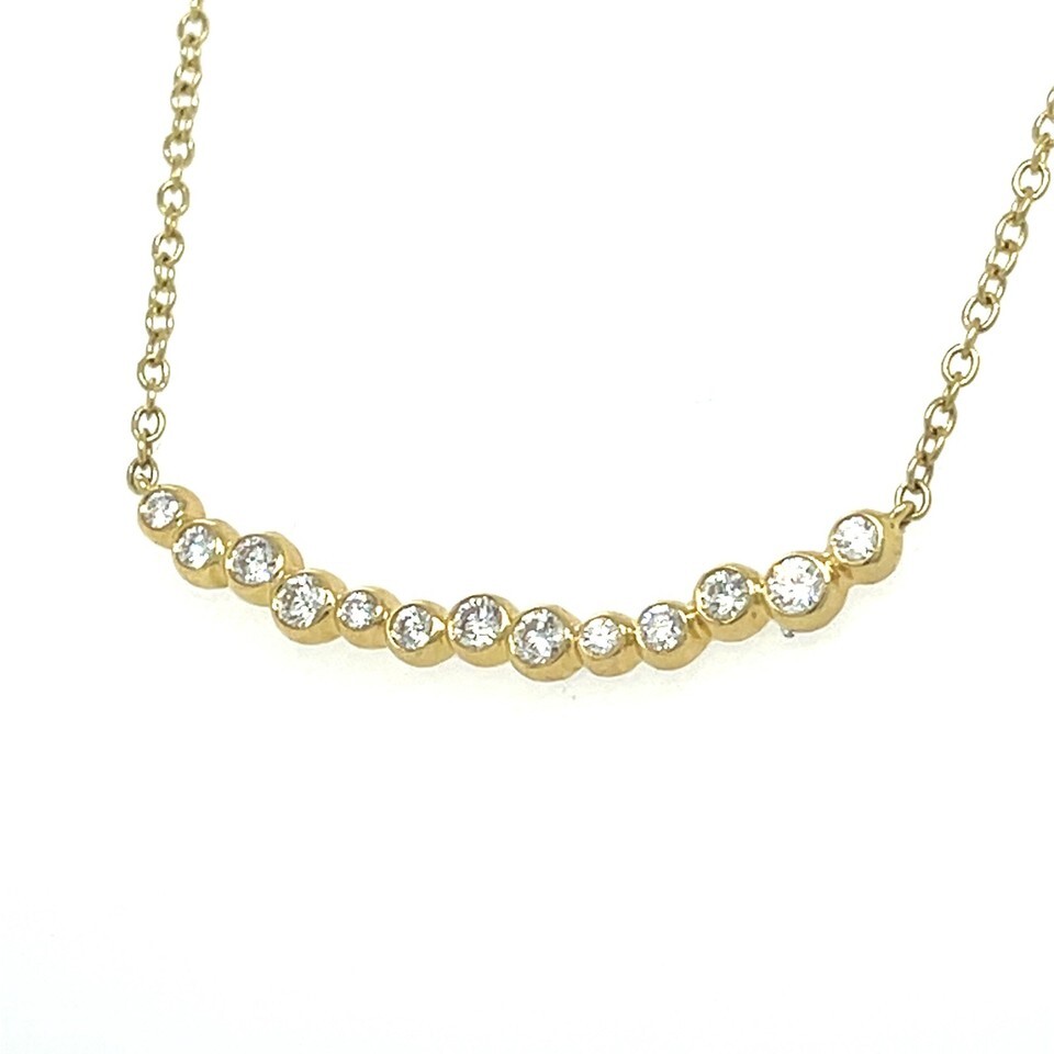 Features Appx 0.53 ct diamonds in bezel setting arranged in "smile" pendant
