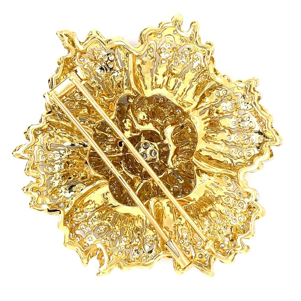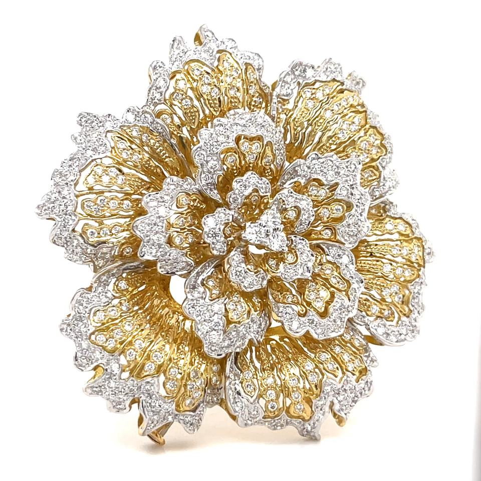 18k Two-Tone Gold Large Flower Brooch w/ 4.15 ct Diamonds Gorgeous!
