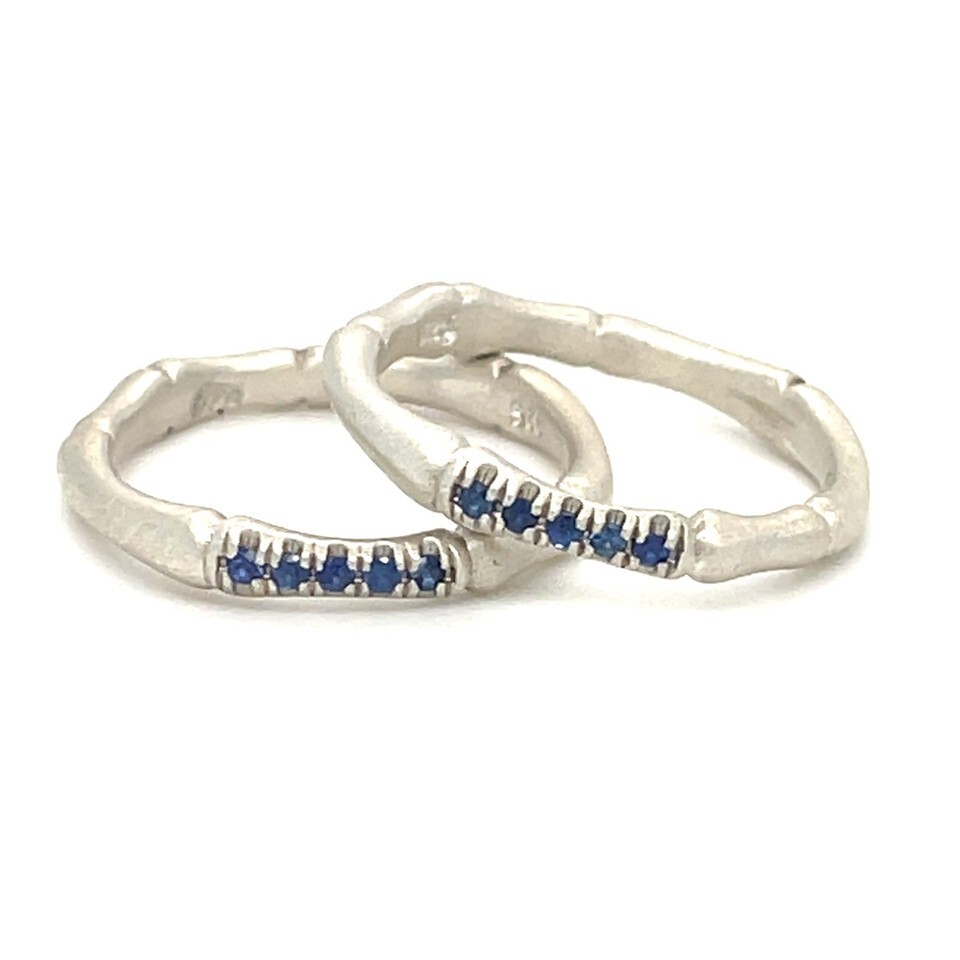 Sterling 18k White Vermeil Bamboo 3 mm Ring w/ Blue Sapphire Accents Sz 6
