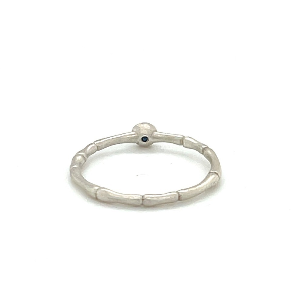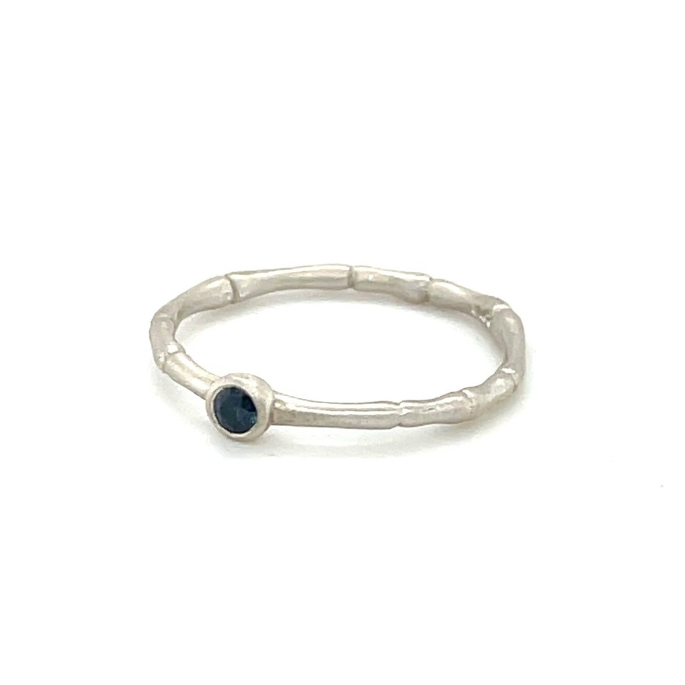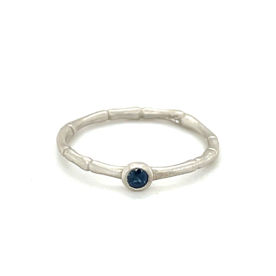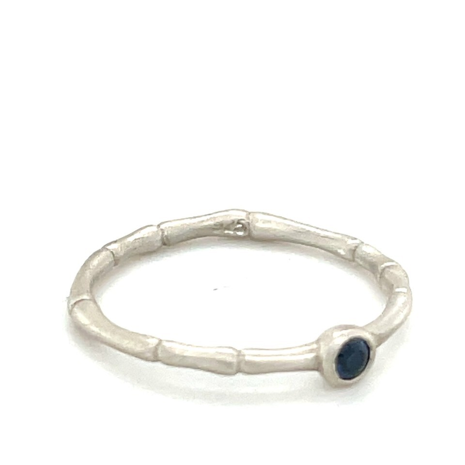 Sterling 18k White Vermeil Bamboo w/ Bezel Set Blue Saphire Ring Sz 5.50
