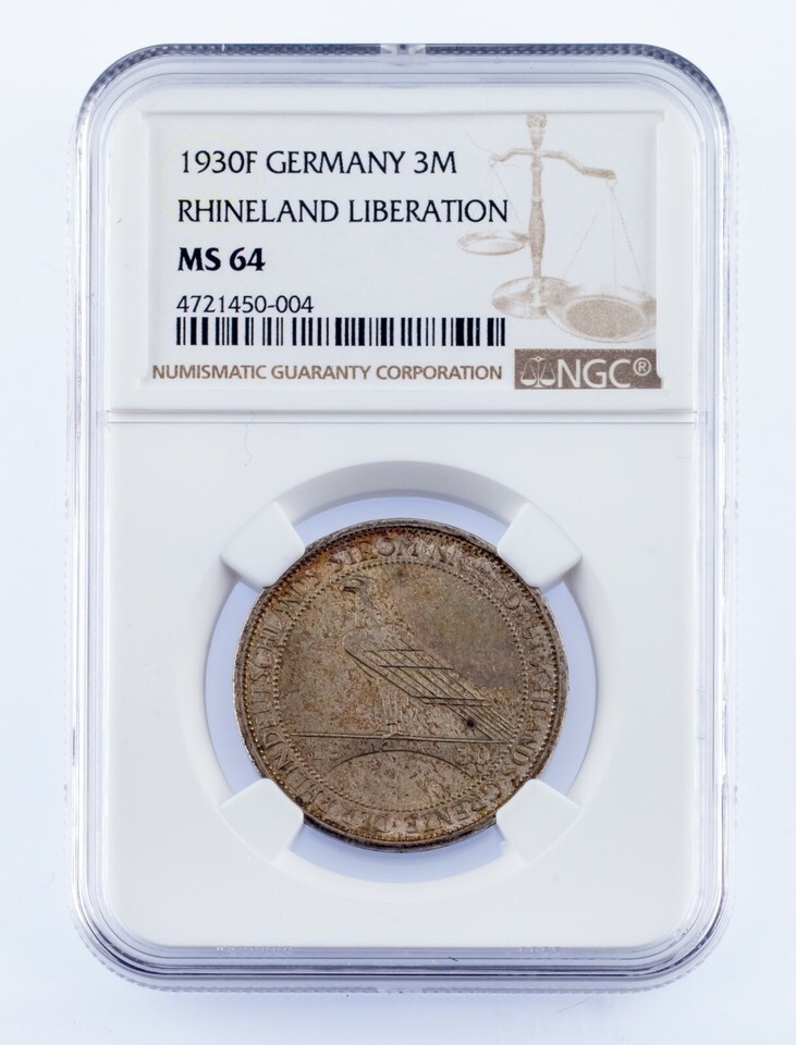 1930-F Germany 3 Mark Silver Coin Rhineland Liberation Graded by NGC as MS-64