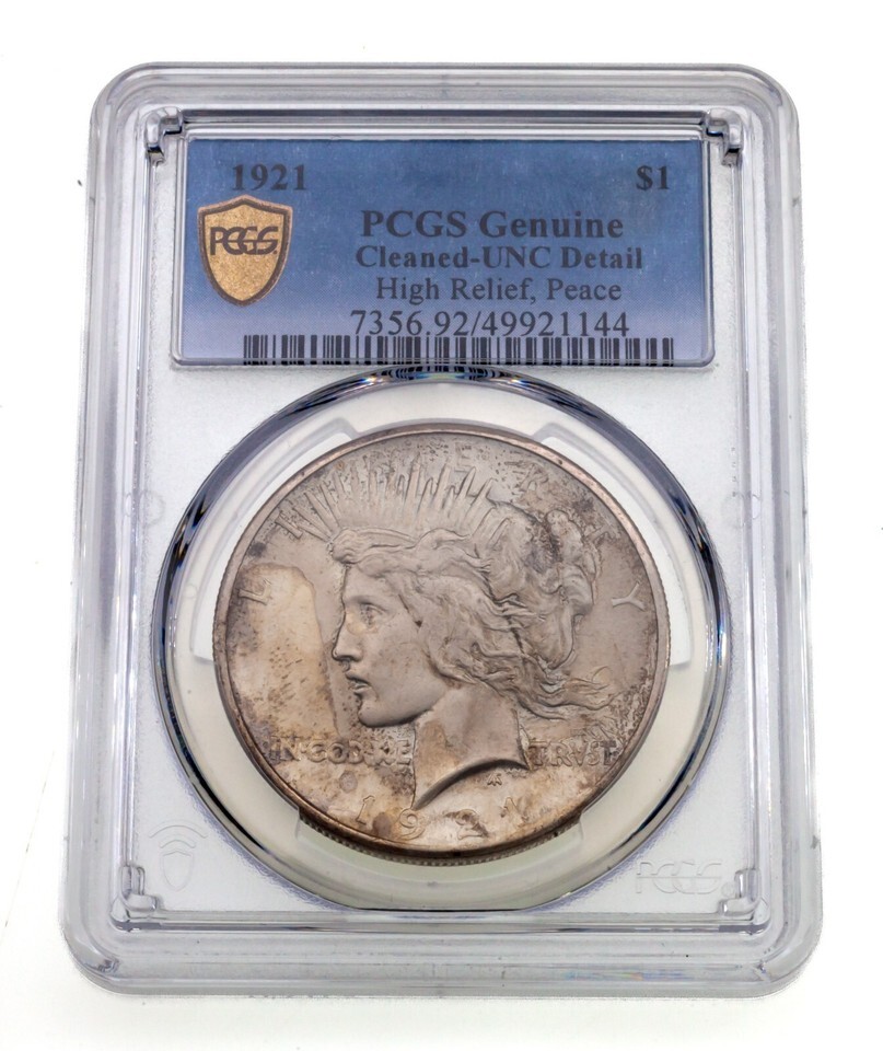 1921 $1 Silver Peace Dollar High Relief Graded by PCGS as UNC Details - Cleaned