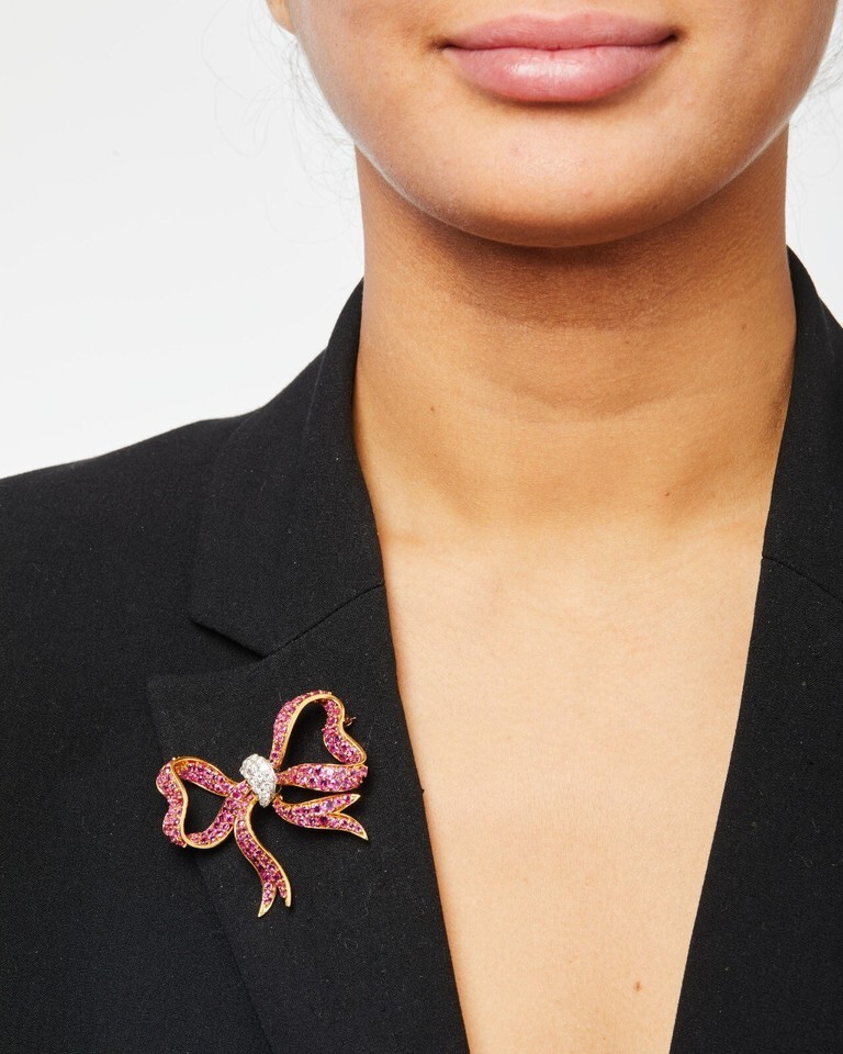 Beautiful Gold, Ruby and Diamond Bow Brooch