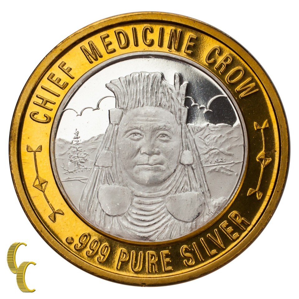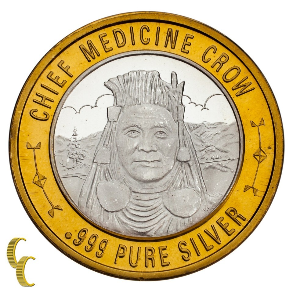 Chief Medicine Crow Native American Casino Gaming Token .999 Silver Limited Ed.
