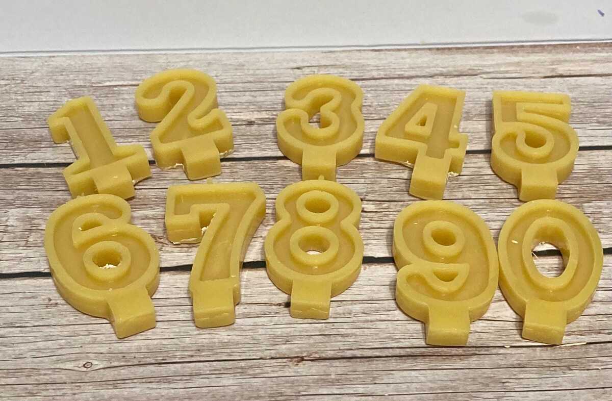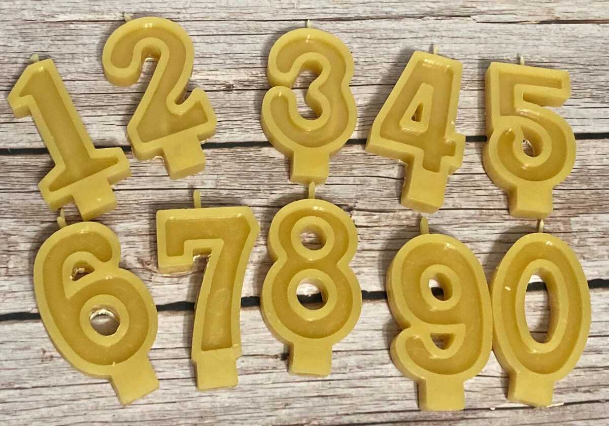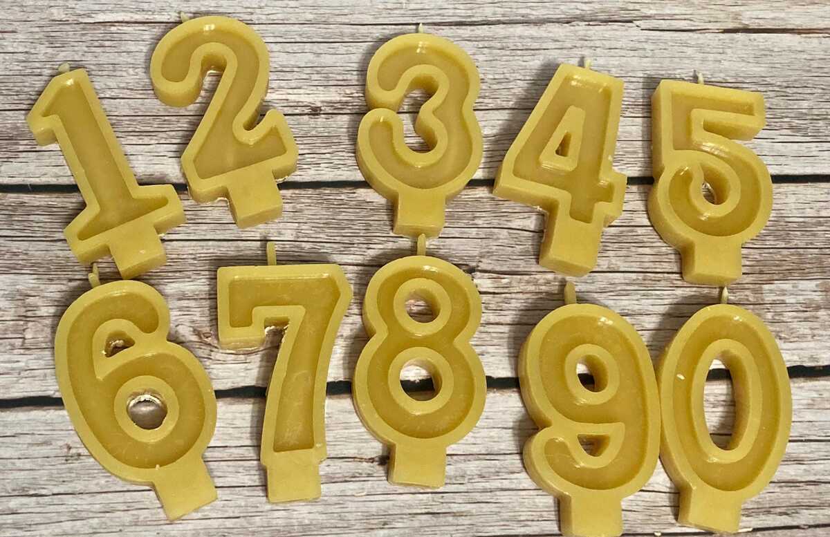 Set of 10 Beeswax Birthday Number Candles – Handmade, Non-Toxic, Hand poured