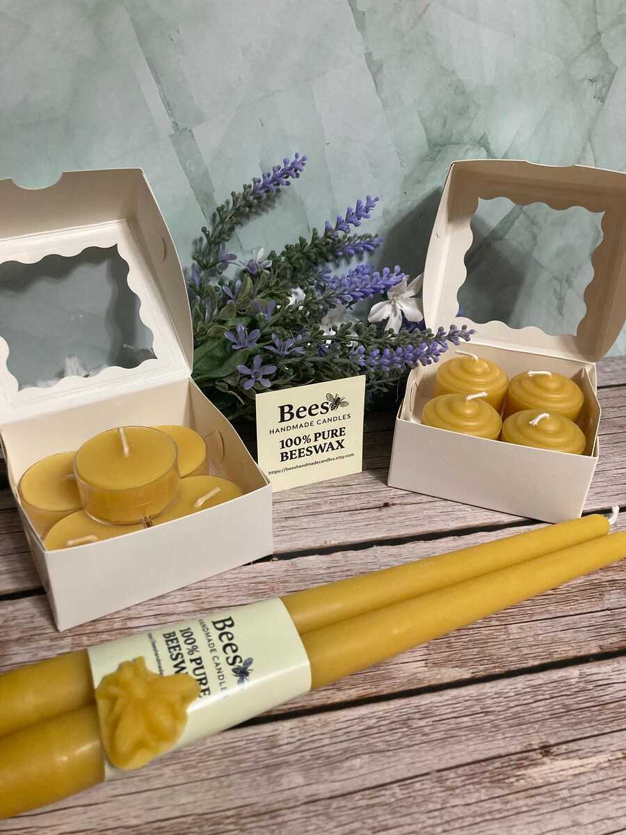 100% Beeswax Candle Gift Set – Tealights, Votives, Tapers - Handmade in Minnesot