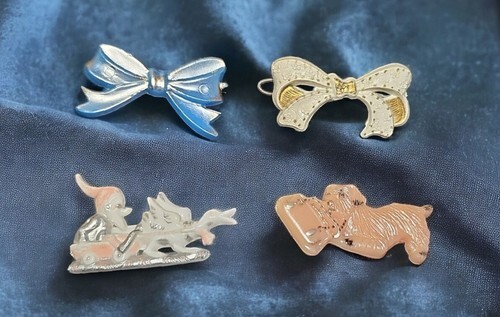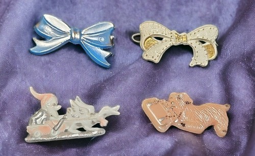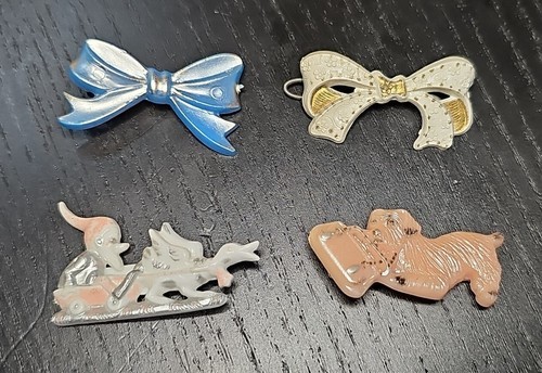 UP FOR SALE: Vintage 1950s Tip Top USA Hair Clip Barrette Lot of 4 Puppy Gnome Bows Lot of 4