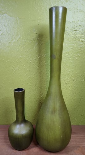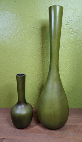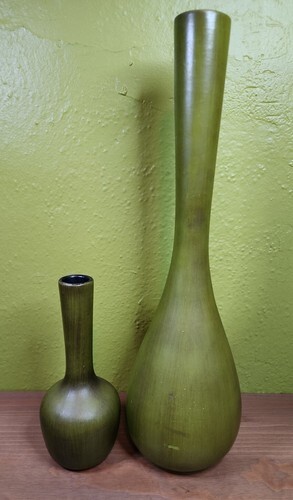 VINTAGE ROYAL HAEGER POTTERY VASE 15" MID CENTURY MODERN Green Brown R1915 and smaller unmarked 7 3/4" matching vase