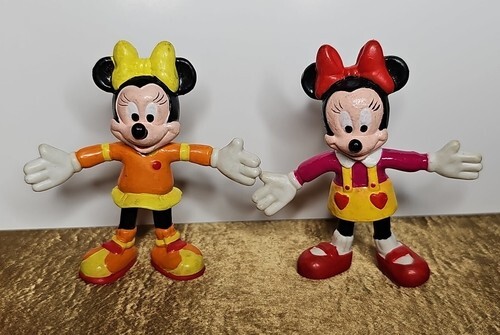 UP FOR SALE: Vintage Disney Applause Minnie Mouse 2" Bendable Posable Figures Set Of 2