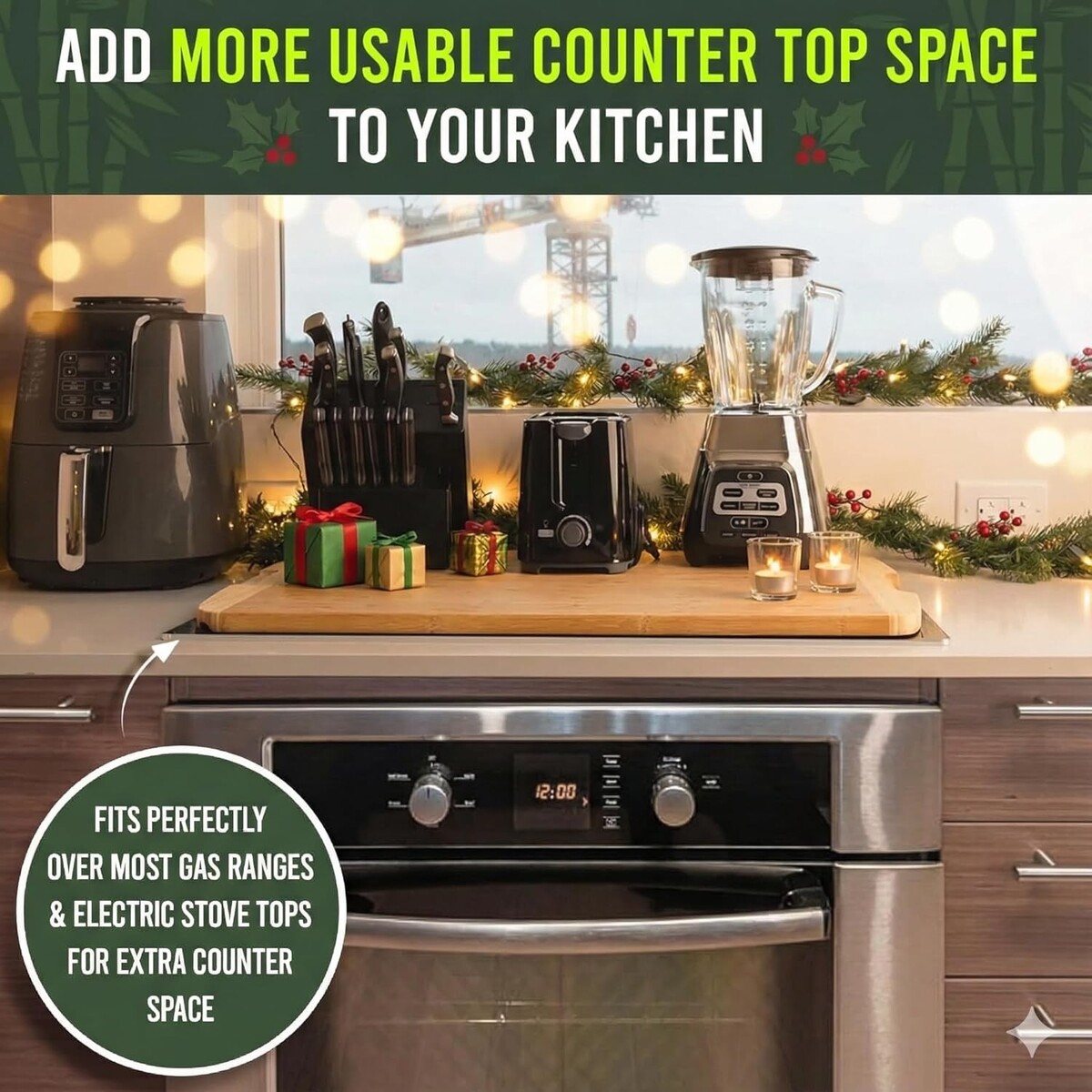 CUTTING BOARD + STOVETOP COVER instantly creates extra counter space, making small kitchens, RVs, and apartments more functional (and works over the sink, too).