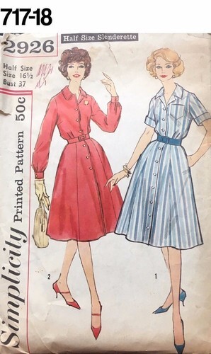VTG 1960s Sewing Pattern Simplicity #2926 Size 16-1/2 Bust 37 Shirt Dress