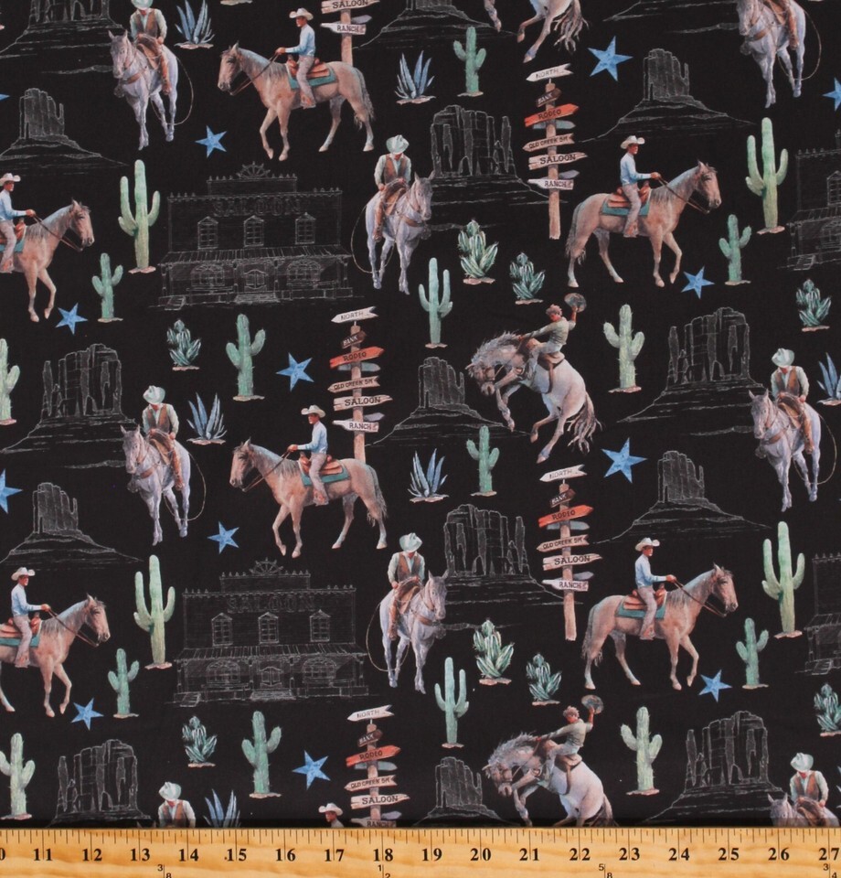 Cotton Horses Western Ranch Signs Cactus Desert Fabric Print by the Yard D462.64