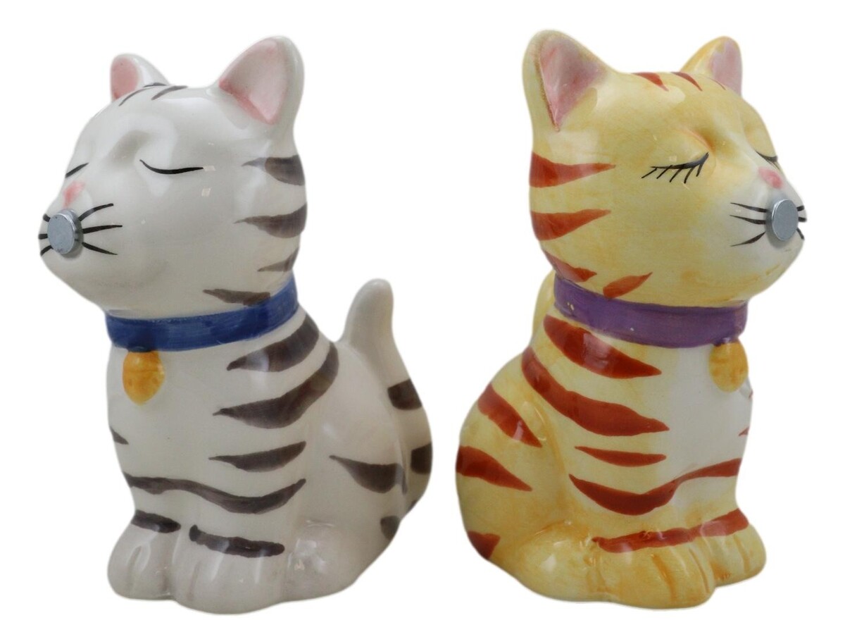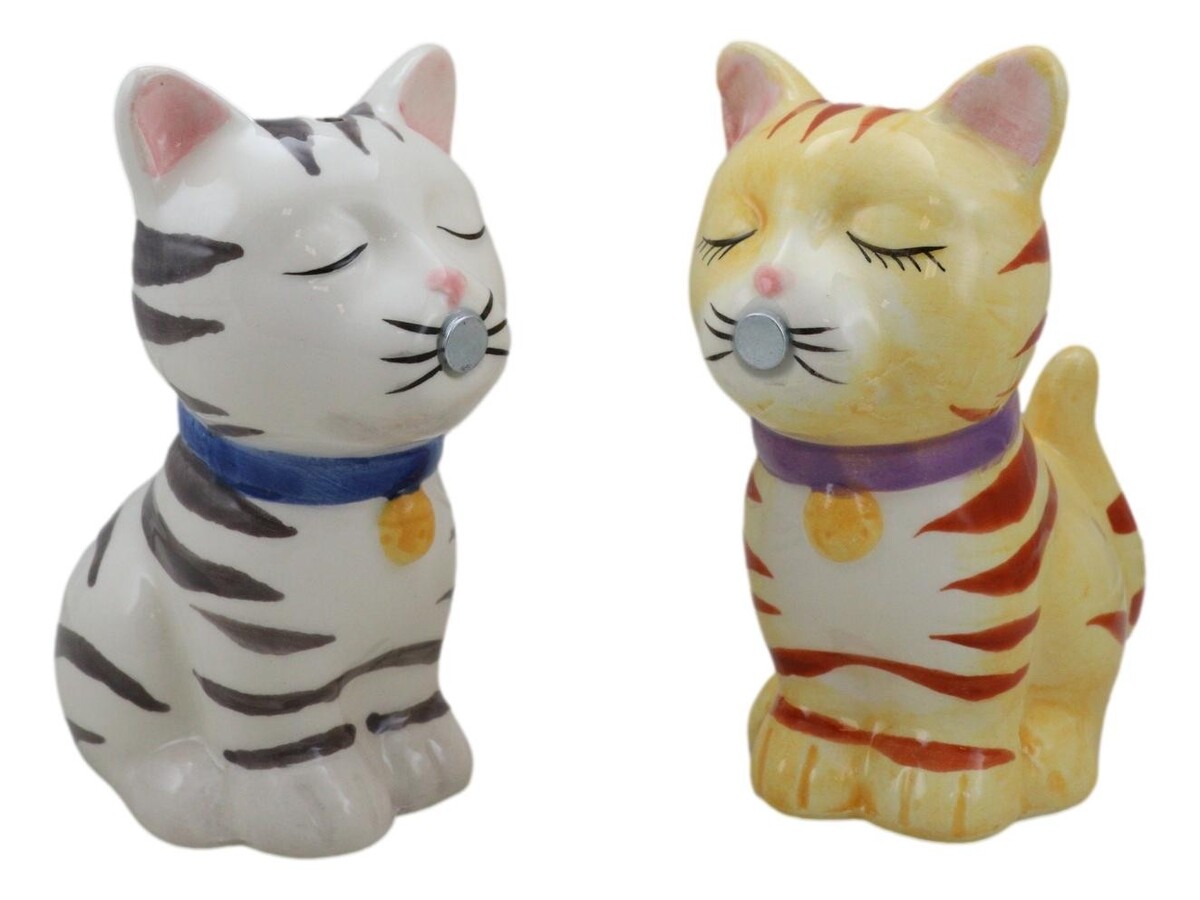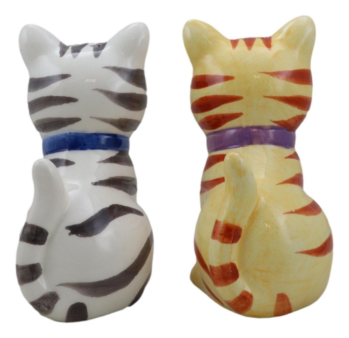 ? This Striped Tabby Cats Salt And Pepper Shaker Set is made of high quality glossy ceramic, hand painted and polished.
